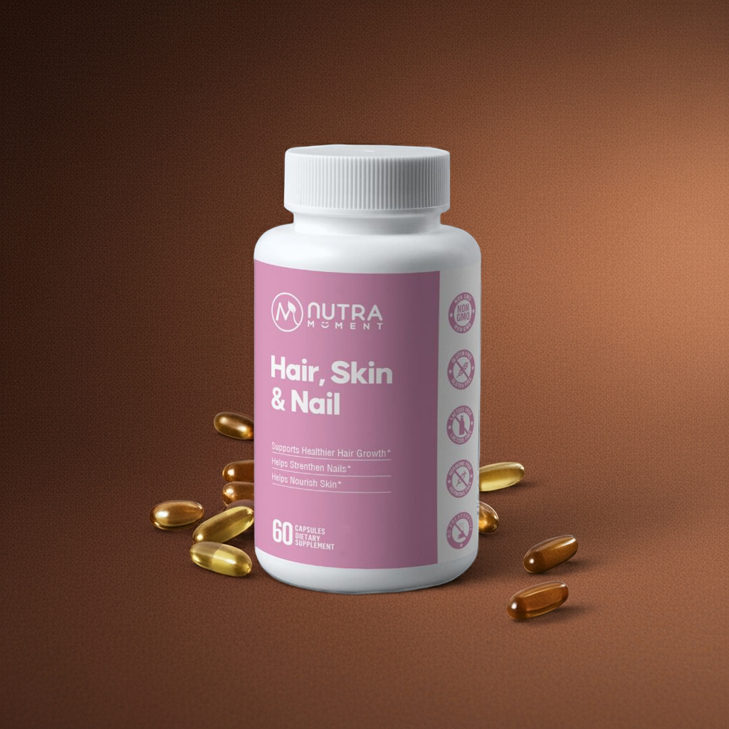 Nutra Moment Hair, Skin, and Nails work together to combat vitamin deficiency and provide your body with the supplements it requires to improve hair and nail health from the inside out.†